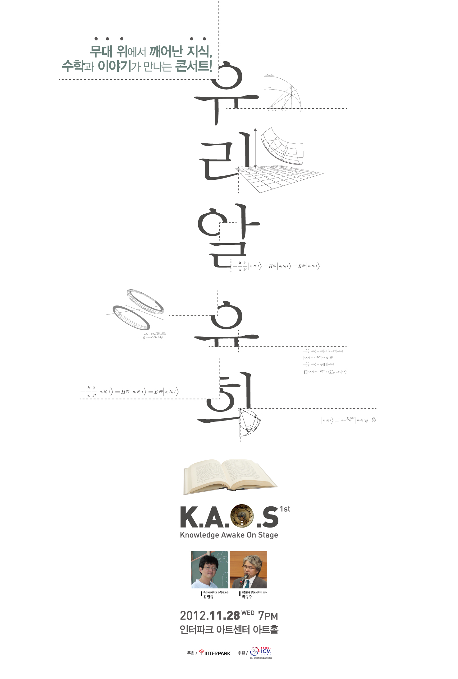 결혼 상대와 직장, 원하는 대학을 선택할 때, 안정적인 선택 방법이 존재할까요? 정답은 바로 수학 속에 있습니다! 2012년 노벨경제학상을 받은 로이드 섀플리와 데이비드 게일 교수가 함께 만든 게일-섀플리 알고리즘을 활용하면, 수많은 선택 속에 방황하지 않고 효과적으로 짝을 찾아낼 수 있다고 하는데요. 그렇다면 수학은 골치 아픈 학문이 아니라 인생의 힘이 되는 날개가 아닐지. 이 가을, 나를 둘러싼 알고리즘을 만나 수학의 유희 속으로 빠져봅시다! 여러분의 많은 관심과 참석을 바랍니다.