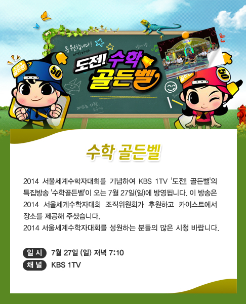 KBS 1TV '도전! 골든벨' 특집방송 '수학골든벨' 방영