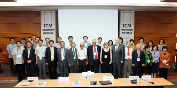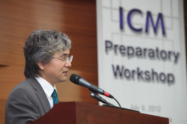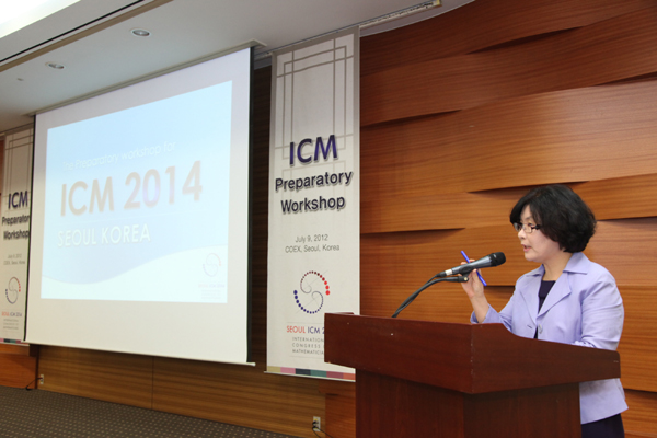 ICM 2014 세계수학자대회 조직위원회는 Ingrid Daubechies IMU 회장과 역대 ICM 조직위원장 4인 - Martin Grötschel 교수 (독일 베를린 ICM 1998 조직위원장), Zhiming Ma 교수 (중국 베이징 ICM 2002 조직위원장), Manuel de Leon 교수 (스페인 마드리드 ICM 2006 조직위원장), M. S. Raghunathan 교수 (인도 하이데라바드 ICM 2010조직위원장) - 을 방한 초청하여 2년 앞으로 다가온 서울 ICM의 준비상황을 보고하고 행사 진행에 필요한 조언을 청취하고자 지난 7월 9일 서울 COEX에서 ICM 준비워크숍을 개최하였습니다. ICM 조직위원과 대한수학회 임원, 관련 기관 인사 등이 참석한 가운데 진행된 이번 워크숍에서는 역대 ICM 조직위원장들의 경험 청취와 질의응답에 이어서 ICM 조직위원회 산하 소위원회별 준비현황 발표와 조언을 수렴하는 귀중한 시간을 가졌습니다.