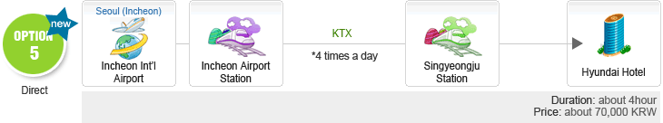 | OPTION 5: Incheon Int'l Airport → Singyeongju Station (KTX) |